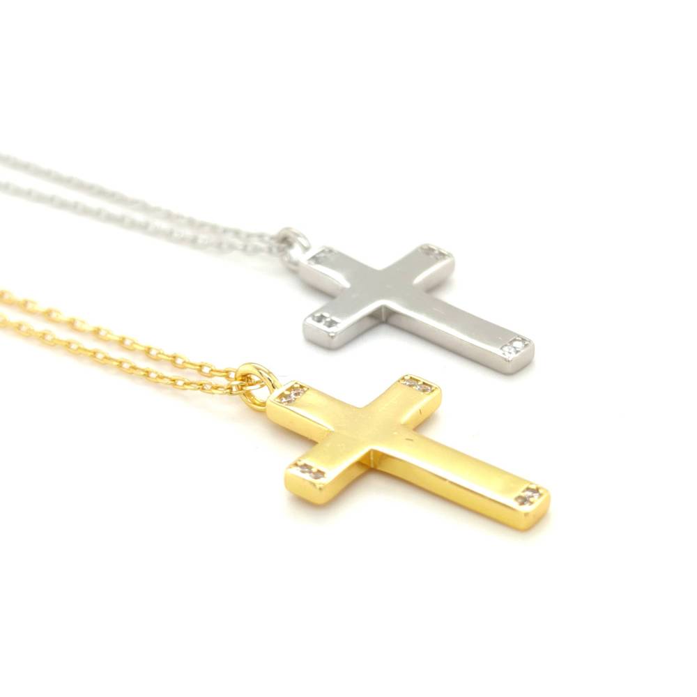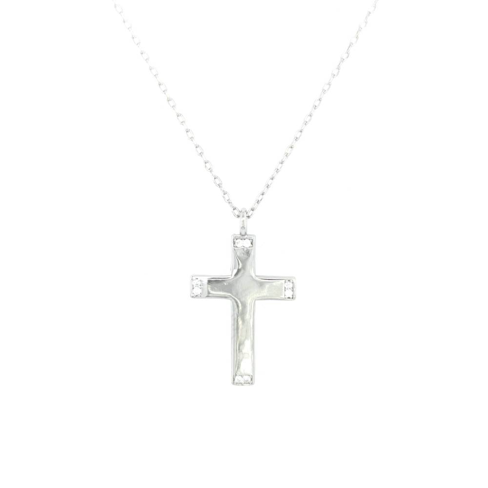Women’s necklace with a cross adorned with zircon, made of silver (925°).