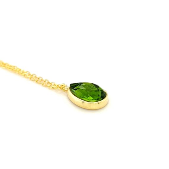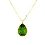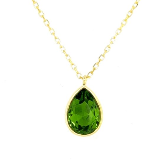 Women’s necklace with green crystal in the shape of a teardrop, made of gold-plated silver (925°).