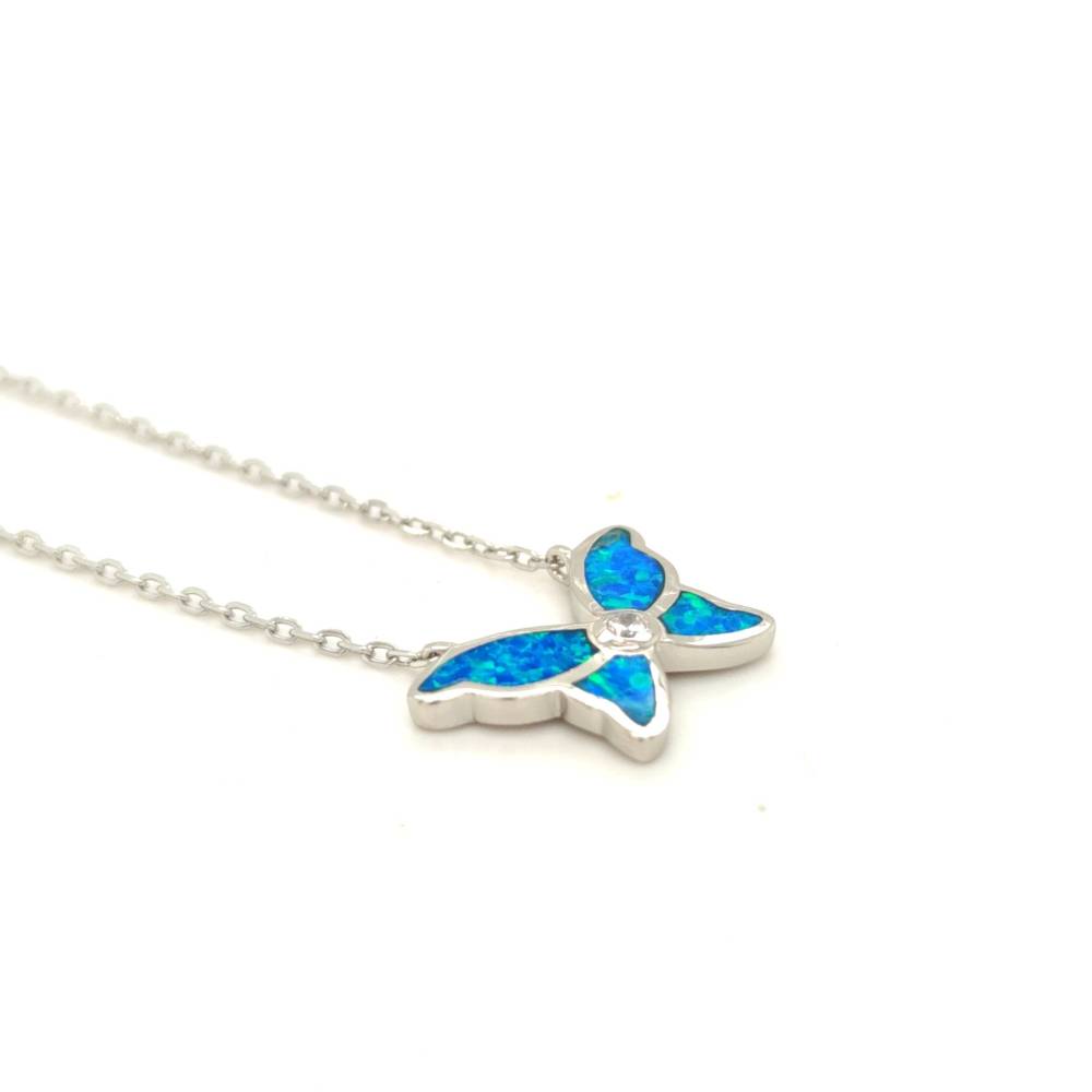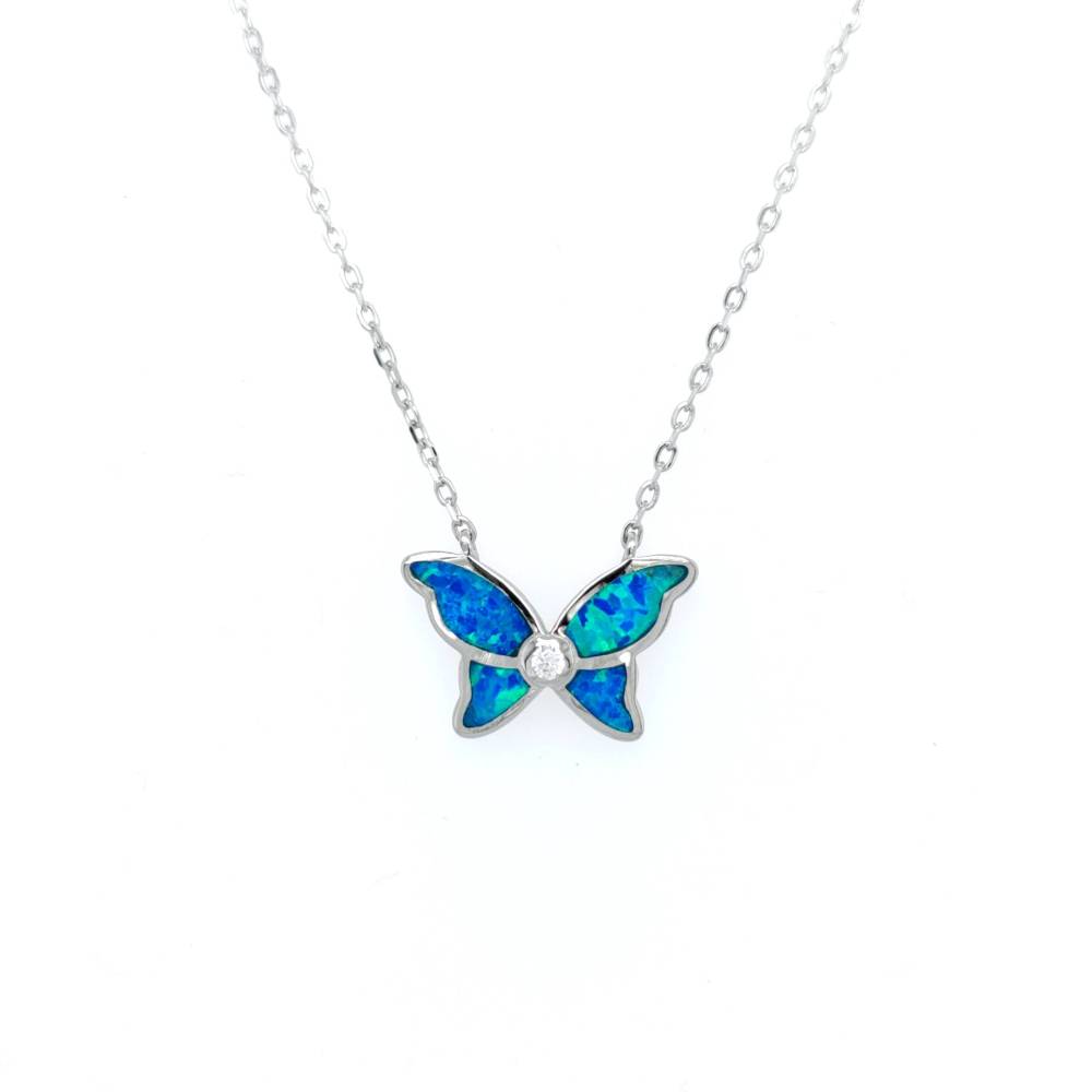 Women’s necklace made of silver (925 °) with chain and butterfly with artificial opal.