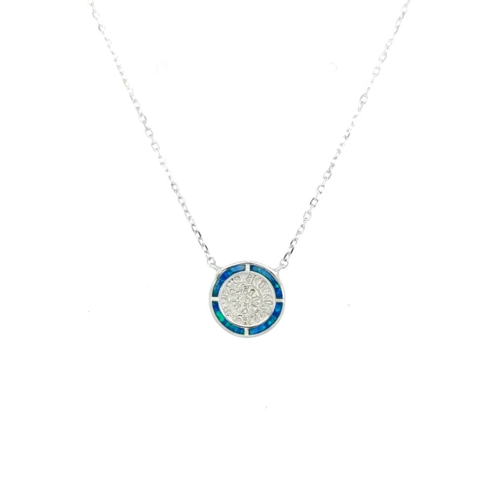 Women’s necklace, silver (925 °), Disc of Phaistos with artificial opal
