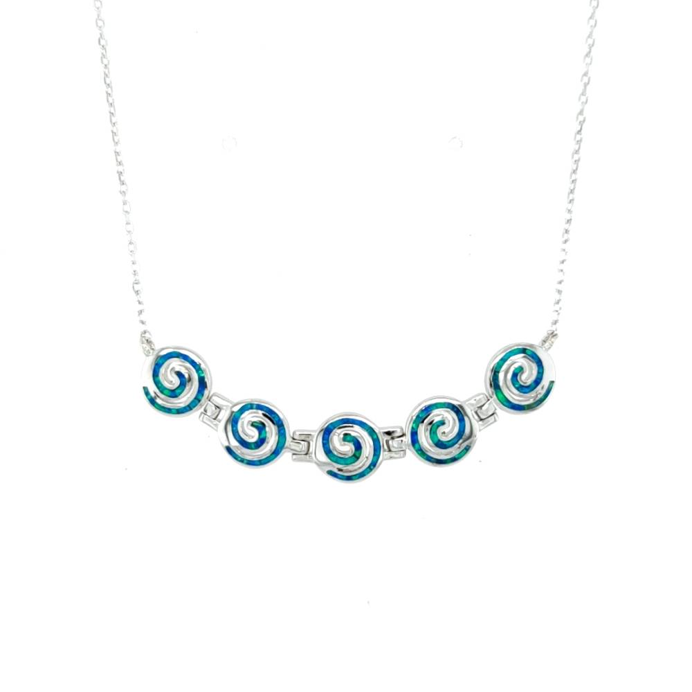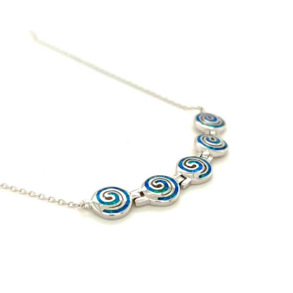 Women’s necklace made of silver (925 °) with chain and spiral element with artificial opal . The Spiral is an Ancient Greek Symbol of Life and is one of the most ancient symbols and has been used since the Paleolithic era in Greece. One of the most mysterious geometric patterns we find on the planet. It has been found in countless amphorae, statues, jewelry and many other objects.