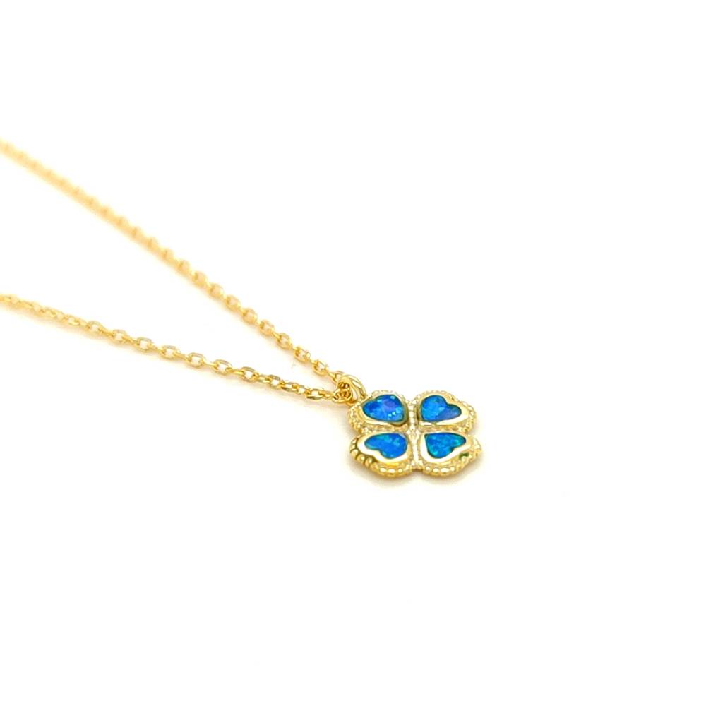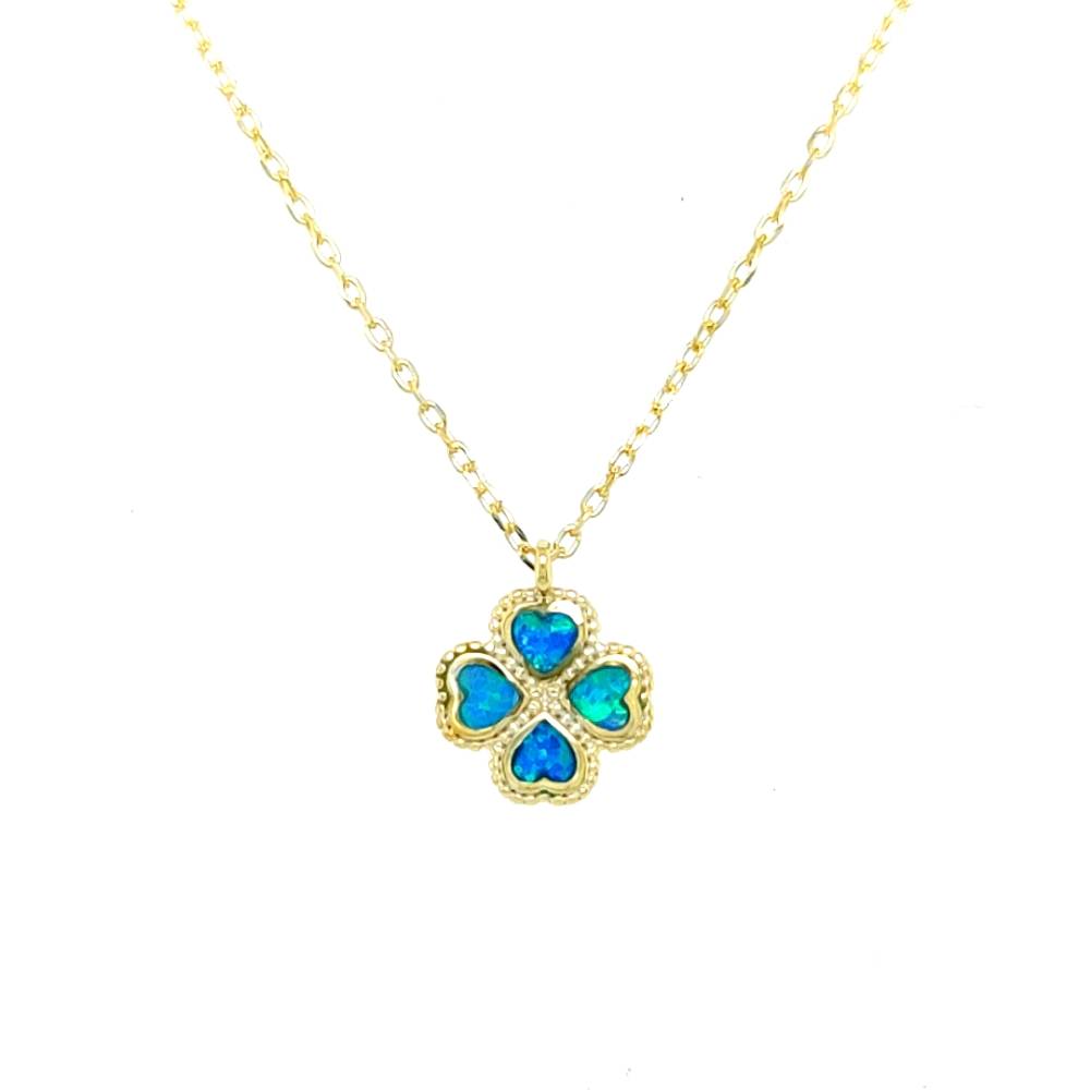Women’s necklace made of silver (925 °) with trefoil and artificial opal in gold.