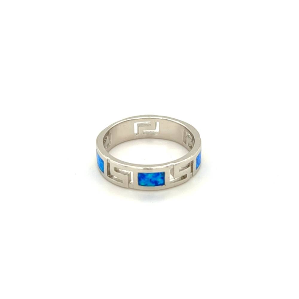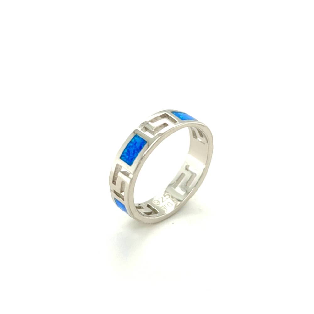 Women’s ring made of rhodium-plated silver (925 °) with Meander symbol with artificial opal. Meander is the most ancient Greek symbol, Victory and Unity, a symbol of Infinity and Eternal Life. Inspired, in the opinion of some academics, by the numerous turns of the river Meander. Meander is used in pottery, temples, monuments, sculptures, objects, weapons, armor and jewelry.
