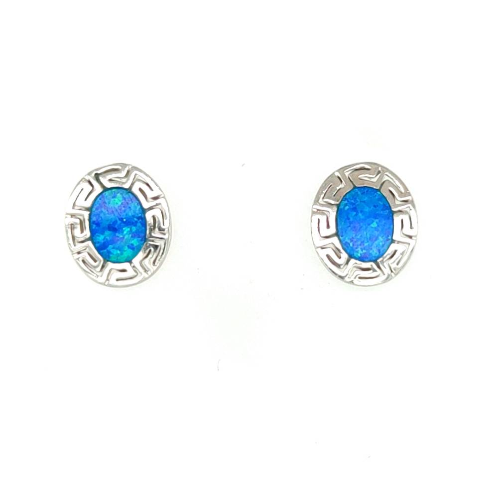 Women’s earrings made of silver (925 °) with Meander symbol with artificial opal. Meander is the most ancient Greek symbol, Victory and Unity, a symbol of Infinity and Eternal Life. Inspired, in the opinion of some academics, by the numerous turns of the river Meander. Meander is used in pottery, temples, monuments, sculptures, objects, weapons, armor and jewelry.