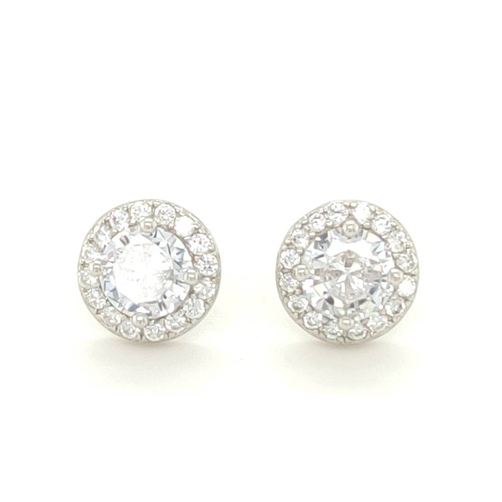 Women’s earrings rosette round white zircon, which are made of silver (925°).
