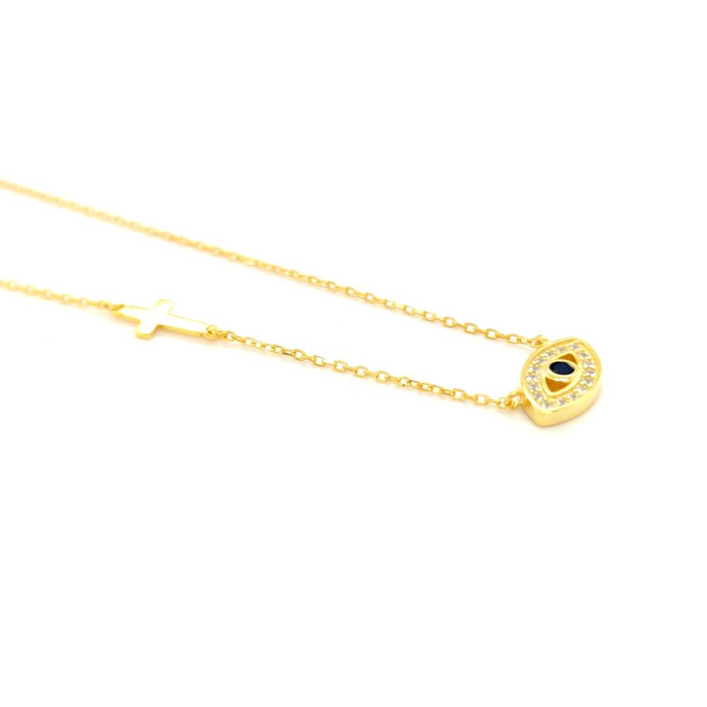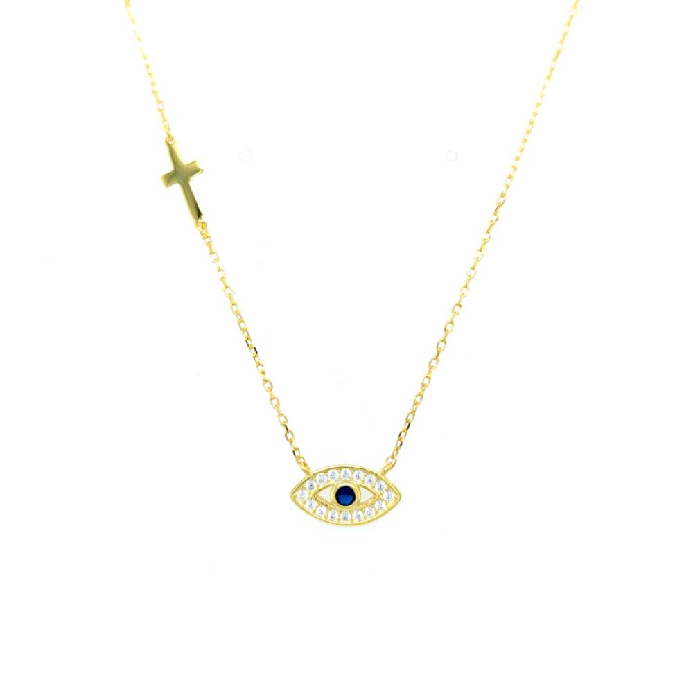 Women’s necklace with eye and a cross, made of gold plated silver (925°).